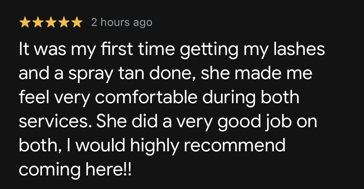 The Client Experience What Clients Are Saying Write A Review Lashed And Bronzed Lashed And Bronzed Lashed And Bronzed